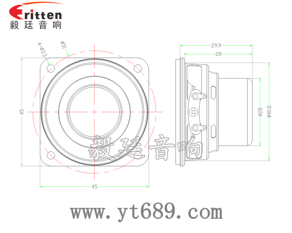 45mm方形鐵盆架內(nèi)磁全頻喇叭,采用高性能稀土高強(qiáng)磁磁鋼,密度高,磁性強(qiáng),利于聲音爆發(fā)力;