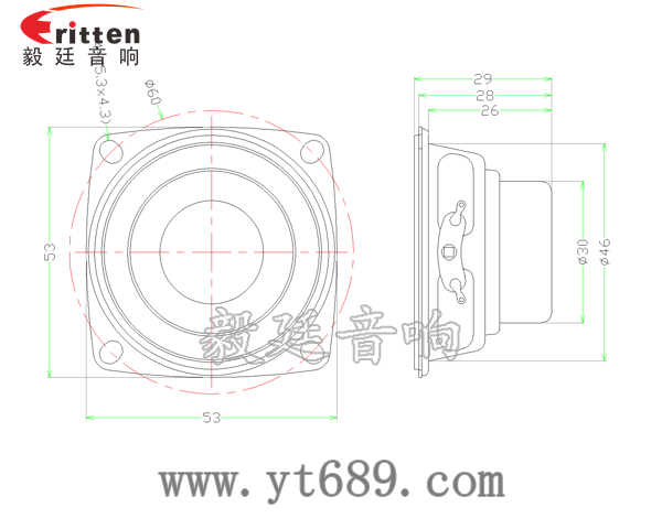 45mm方形鐵盆架內磁全頻喇叭,采用高性能稀土高強磁,靈敏度高,磁性強,音色清晰。