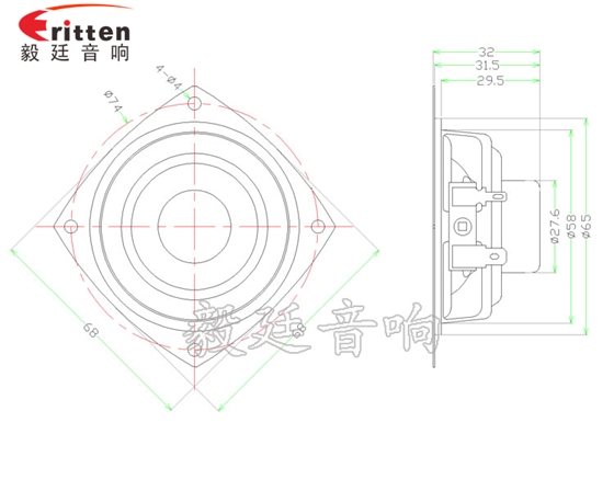 4寸20芯10瓦全頻多媒體音箱喇叭