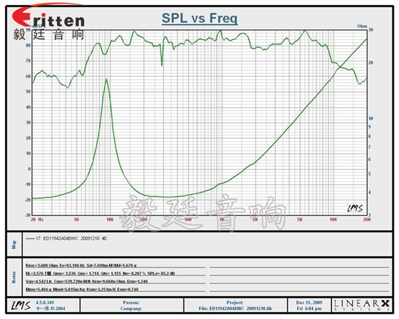 ★頻率范圍(freq response):93Hz~20KHz