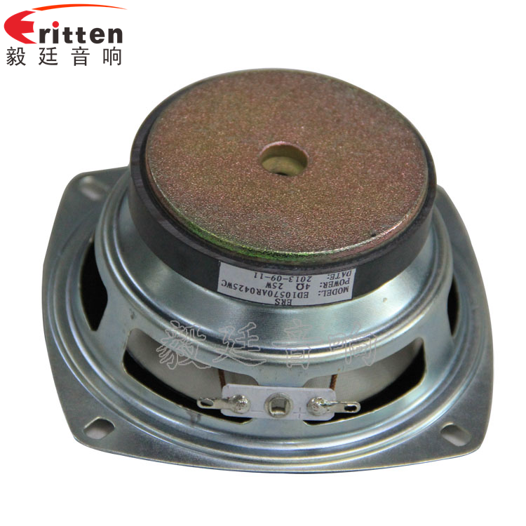 4寸蘋果形鐵盆架外磁中低音喇叭,采用了高性能鐵氧體,音色穩定,有利于聲音的爆發力;