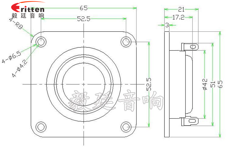 2.5寸方型內磁高音喇叭,采用的磁性強,音質清晰,高性能稀土高強磁,使高音更加清澈通透,高音純正干凈;