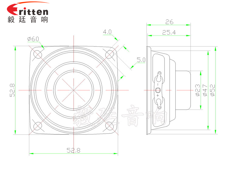 53mm蘋果形鐵盆架內磁全頻喇叭,采用高性能釹鐵硼,密度高,靈敏度高;