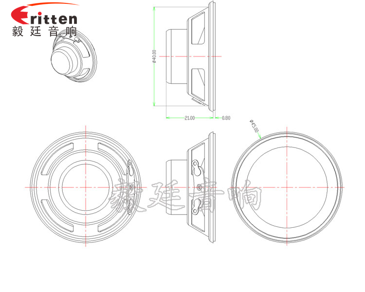 45mm圓形銀色鐵盆架內(nèi)磁全頻喇叭,采用的是鐵磁性極其特別,外觀四孔設(shè)計使喇叭散熱效果更好;