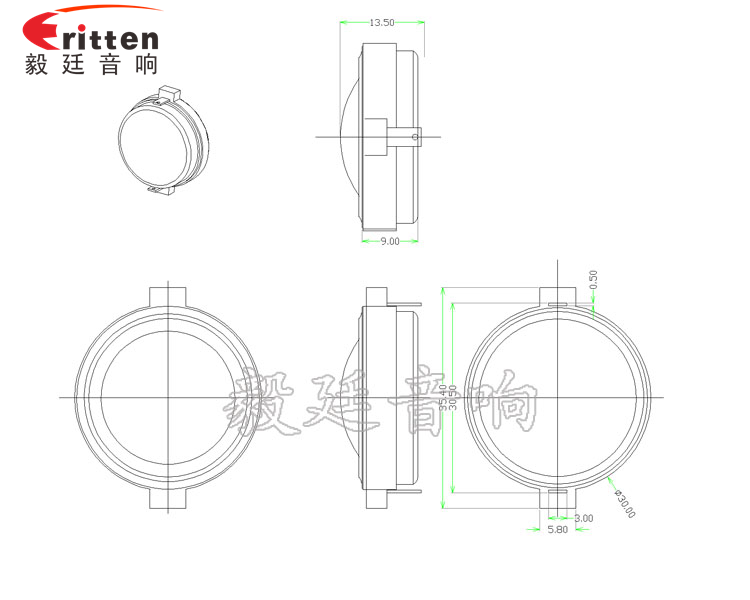 此款30mm高音喇叭廠家,額定功率10W,頻率范圍1.8KHz~30KHz,音色響亮透澈,優異用于學習機,故事機喇叭上,東莞毅廷喇叭廠家一直以最真誠的服務,和最專業的技術受到廣大客戶的信賴。