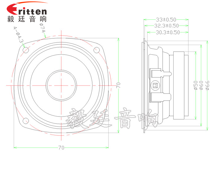 70mm蘋果形鐵盆架外磁全頻喇叭,采用了高性能、高密度鐵氧體,磁性強,自然清澈;