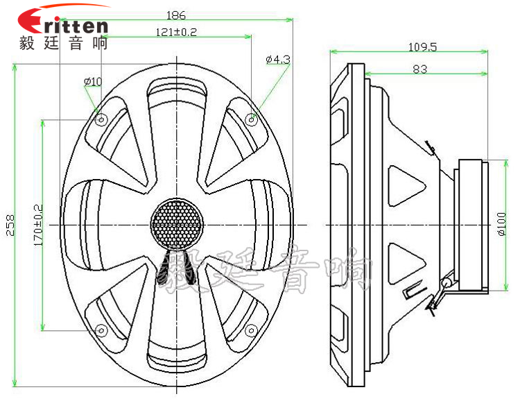 6寸異型外磁鐵盆架全頻喇叭,采用是高性能鐵氧體,音色清晰、飽滿;