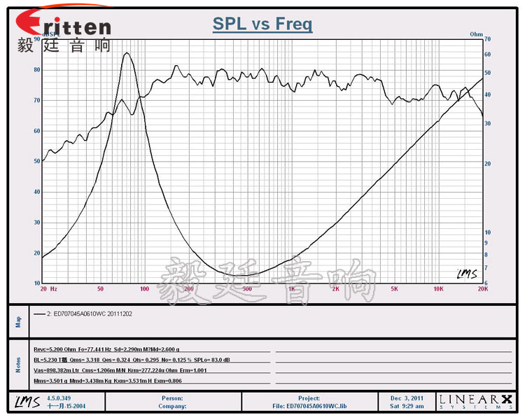 ★頻率范圍(freq response):77Hz~15KHz