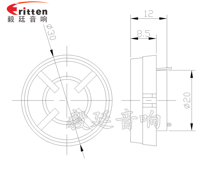 30mm圓形鐵盆架全頻喇叭,采用的是鐵氧體磁鋼,磁性能強、穩(wěn)定性好、音質(zhì)清晰、飽滿;