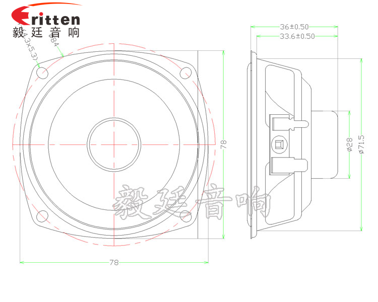 78mm蘋果型鐵盆架內磁全頻喇叭,采用高性能稀土高強磁,保持豐富的音質;