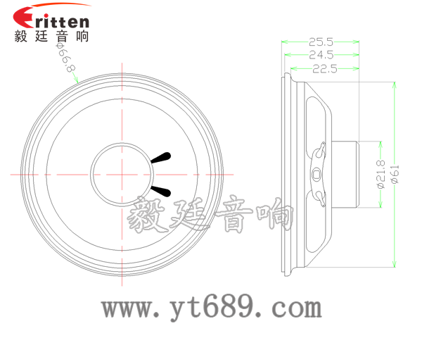 2.5寸圓形鐵盆架內磁全頻喇叭,采用了高性能的釹鐵硼永久磁,性能穩定好,音色清晰;