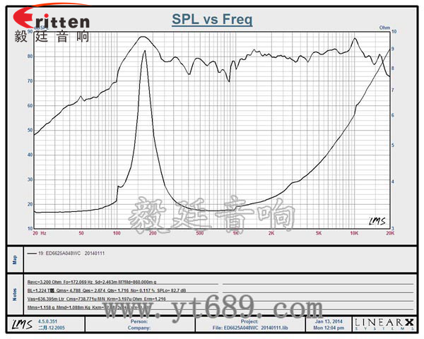 ★頻率范圍(freq response):172Hz~18KHz