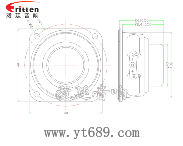 此款40mm16芯3瓦全頻喇叭,音質清脆悅耳,頻率范圍為274HZ~20KHz,優異用于故事機單元上,音色飽滿,毅廷喇叭廠家工程師精心研發、制造出美美的小型的揚聲器,是發燒者的愛慕。