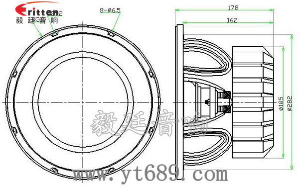 12寸圓形重低音喇叭,采用了高純度的鋁盆架,加強加寬壓鑄磨砂,承載著大型磁路和振動系統(tǒng),保證了大功率工作時的穩(wěn)定性;