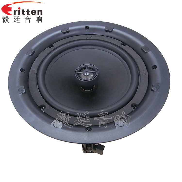 這款天花喇叭的外觀防塵罩,用的是高密度金屬網罩進過環保烤漆工藝,手感平滑,不褪色、不生銹、不氧化、超窄邊有圓形和正方形兩種防塵罩形狀,帶八個超強磁吸鐵,可吸性強,外觀大氣、精美,是毅廷喇叭工程師精心研發的一款超完美的8寸天花吸頂式喇叭。