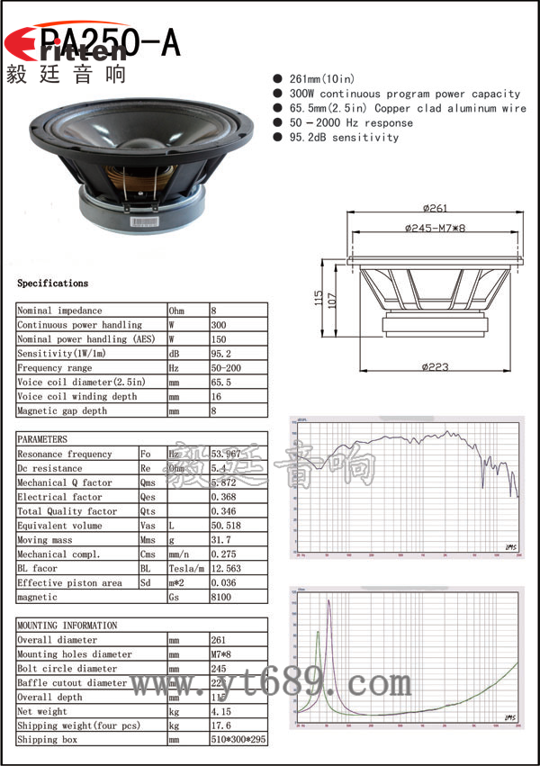 此款超級重低音揚聲器,廣泛用于10寸重低音舞臺音箱喇叭,額定功率達到150W,防水防潮喇叭,聽感厚實,受到廣大客戶的信賴。